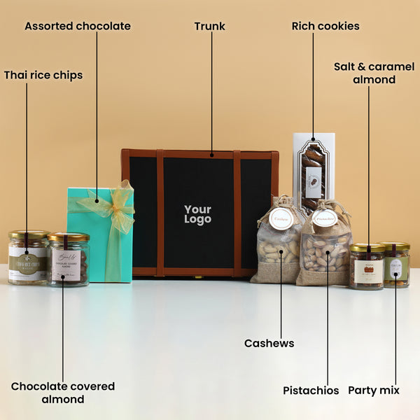 Whether you're searching for corporate gifts for Diwali, employee hampers, client appreciation boxes, or premium holiday presents, the Crunch Trunk is designed to impress every palate.