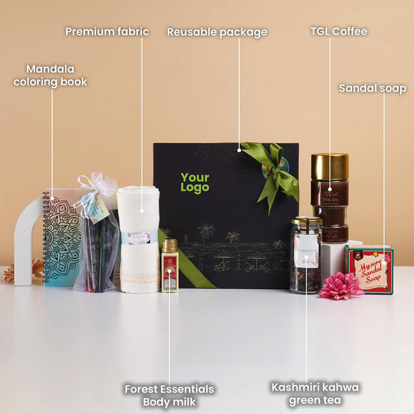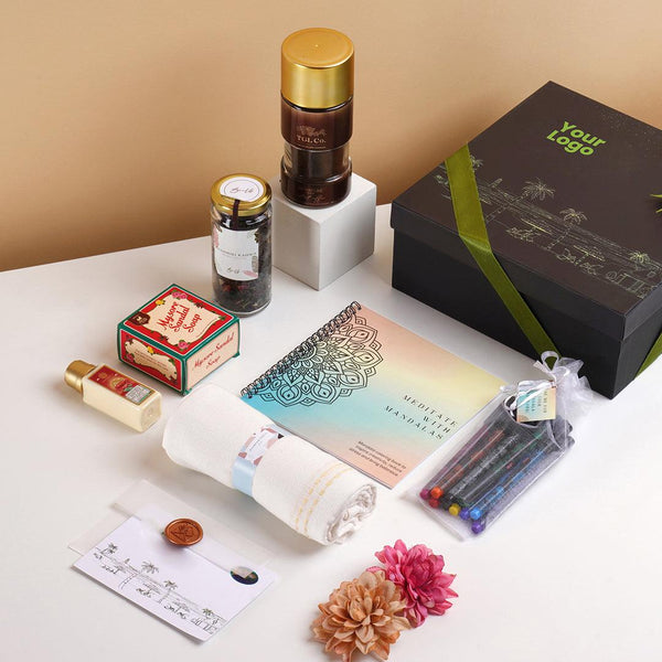 *Makers note: “Fielddrive wanted a hamper that wasn't the usual bundle of gifts – we recommended they added a “mandala” coloring book along with some coloring pens. Creating mandala art has been known to have calming effects on the human mind, making it a great gifting options for your friends, family or coworkers.”