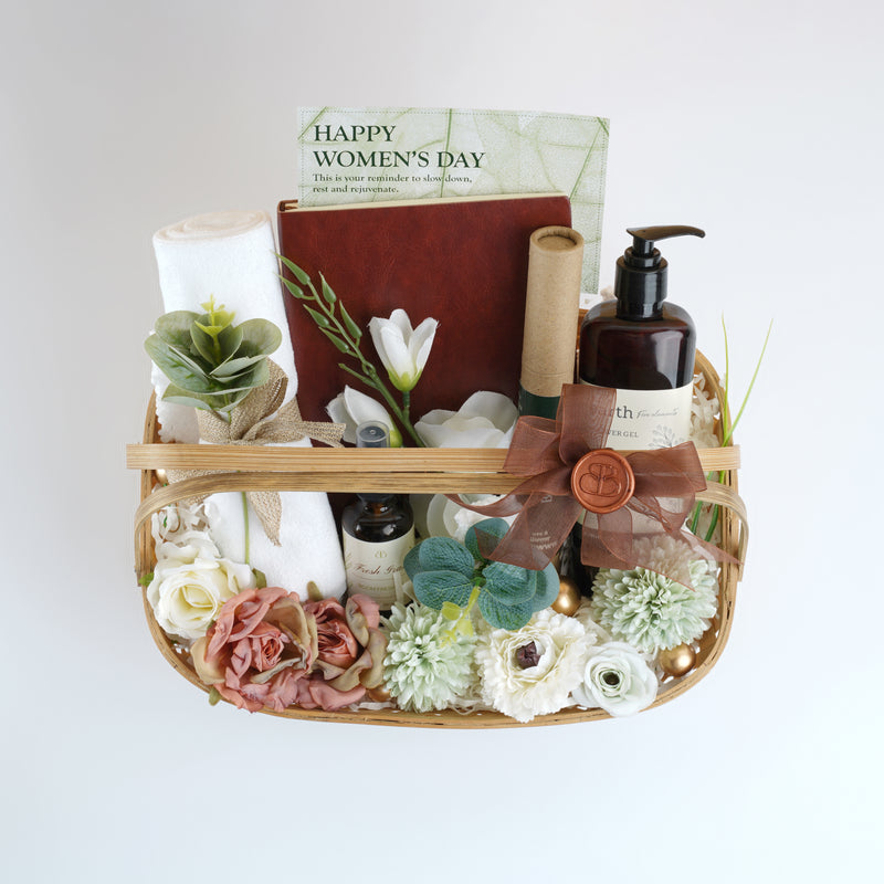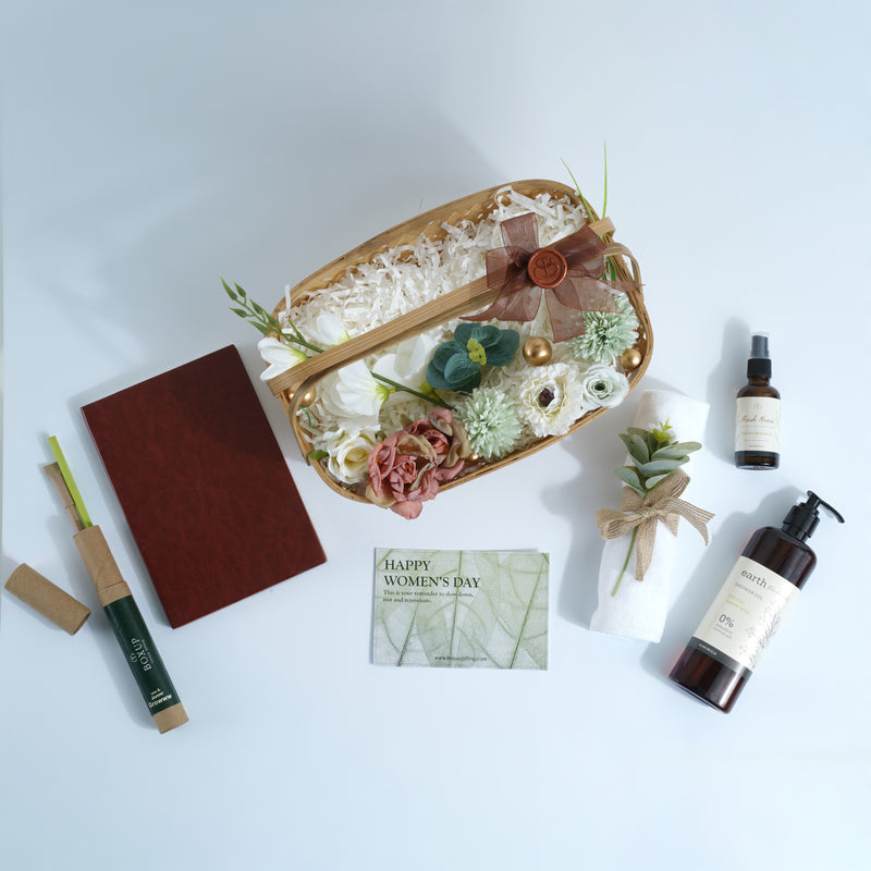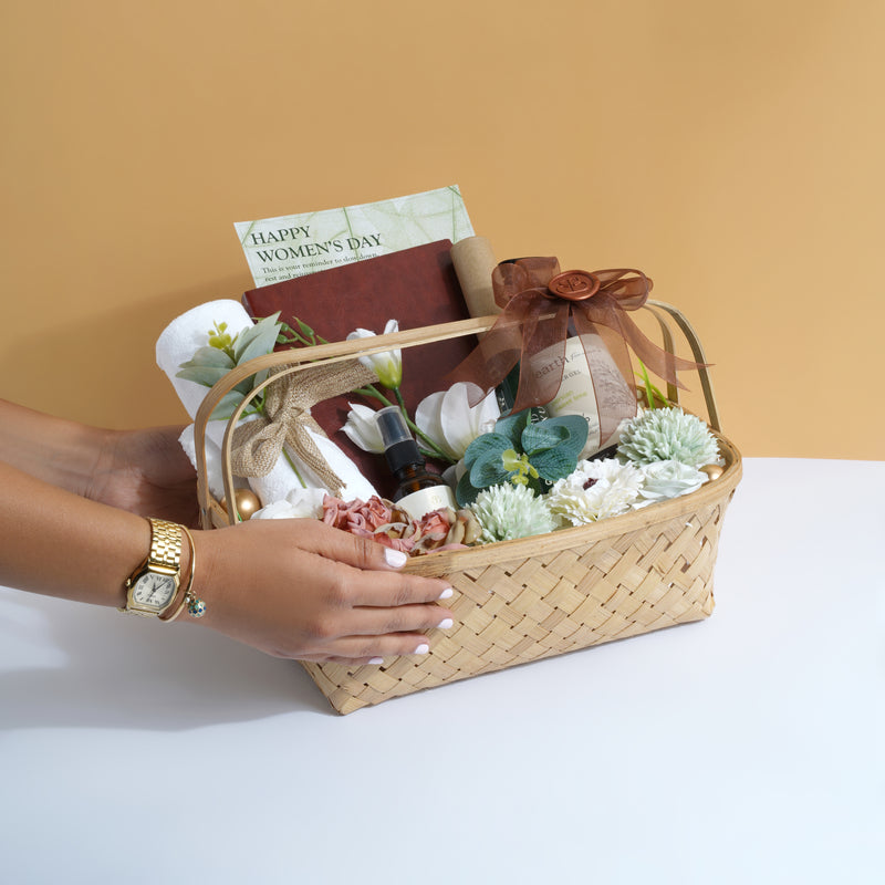 The Her Collection is a balanced curation that brings together everyday essentials with moments of self-care. Thoughtfully arranged in a classic basket, this hamper is designed to feel useful, calming, and quietly indulgent.