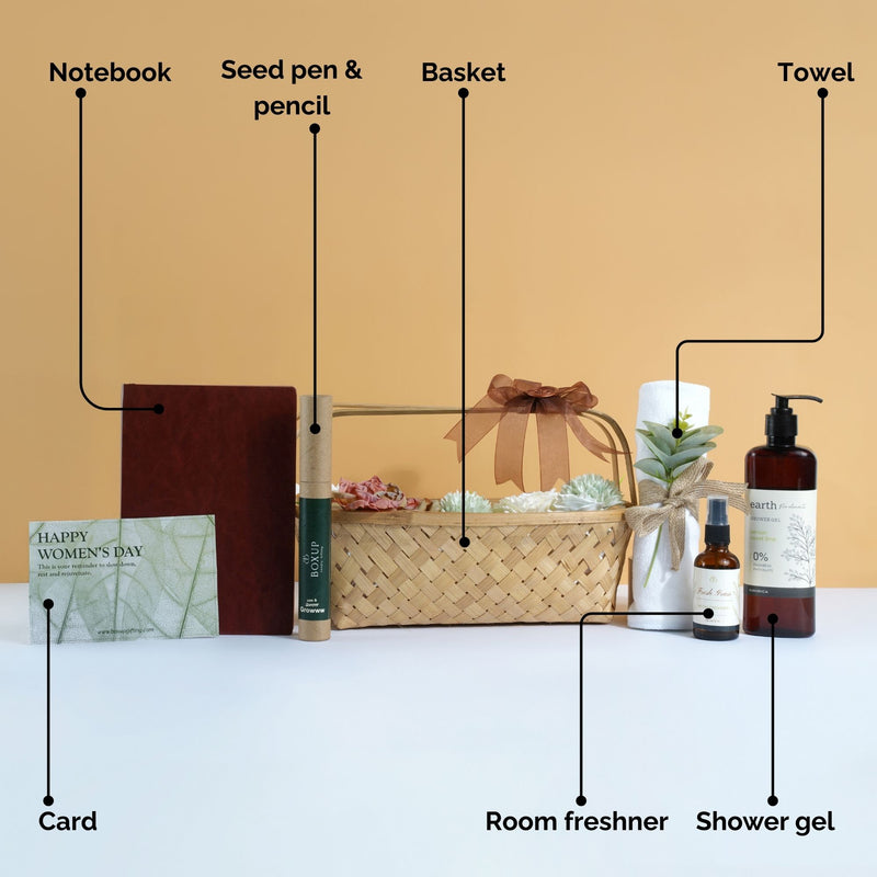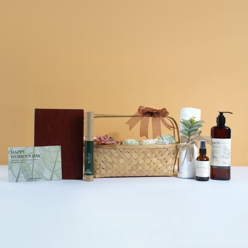 Featuring a premium Newton leather journal, seed pen and pencil, a refreshing room freshener, Earth shower gel, and a soft face towel, each element supports both productivity and personal well-being. Finished with a custom card, The Her Collection makes a thoughtful choice for Women’s Day, appreciation gestures, or meaningful everyday gifting.