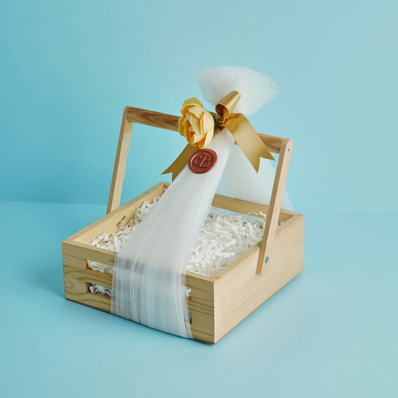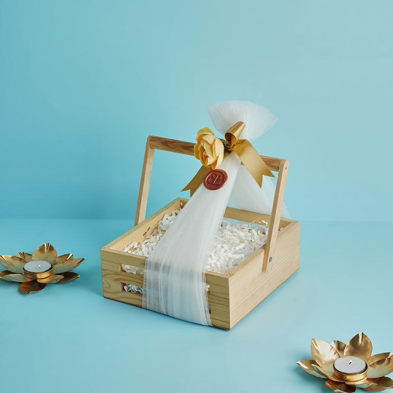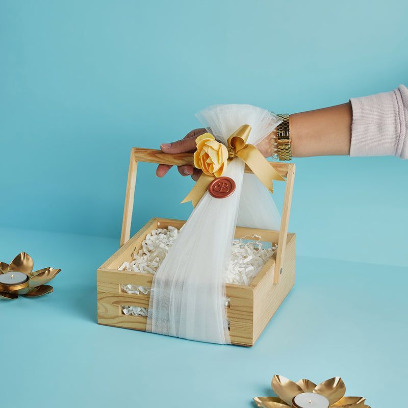Crafted from sturdy pinewood, this basket offers a rustic yet refined base for curated hampers. Ideal for premium gifting with a natural, earthy appeal.