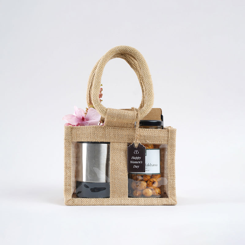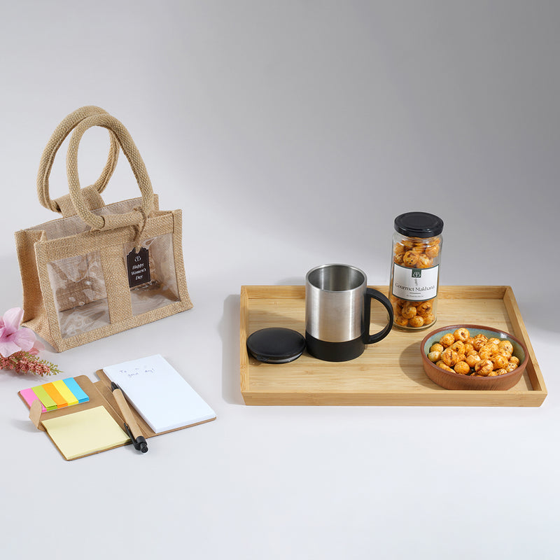 Featuring a reusable jute bag, the Eco sipper, wholesome gourmet makhana, and a pocket notepad with pen, each item is chosen for its utility and mindful appeal. Finished with a custom card, The Timeless Essentials Kit is an ideal choice for corporate gifting, onboarding kits, or thoughtful gestures that value simplicity and purpose.