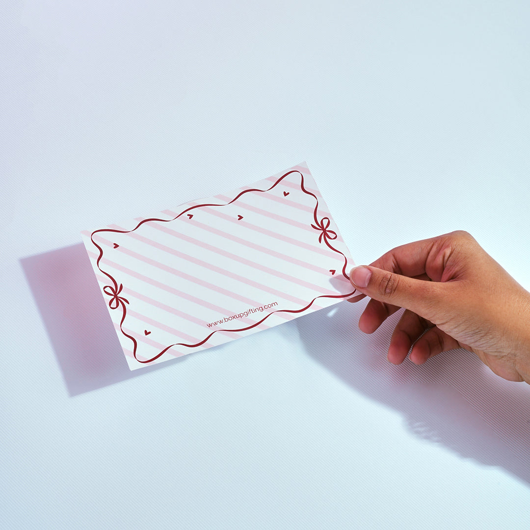 A notecard wrapped with butter paper and sealed with wax is attached to your purchase with no additional charges.