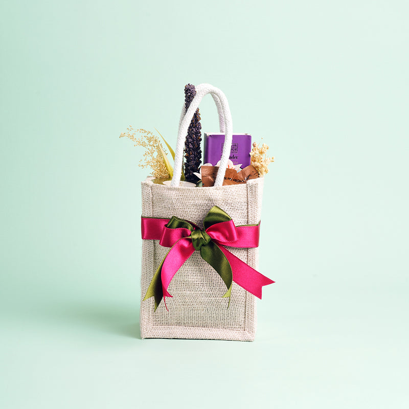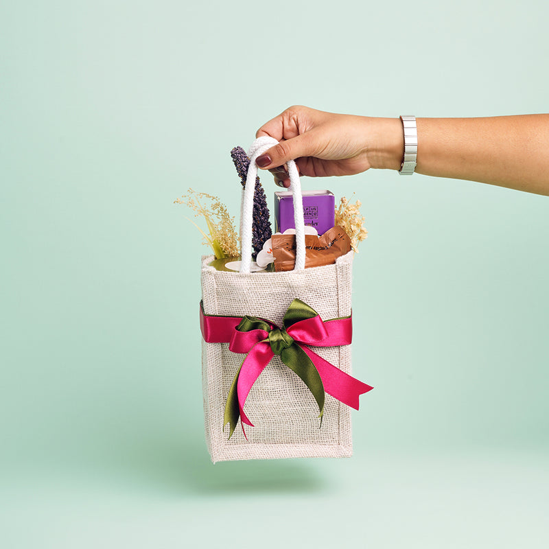 A thoughtful blend of indulgence and calm, this hamper is curated to create moments of comfort and joy. Presented in a reusable jute bag, The Holi Select carries a natural charm that feels both earthy and elegant.